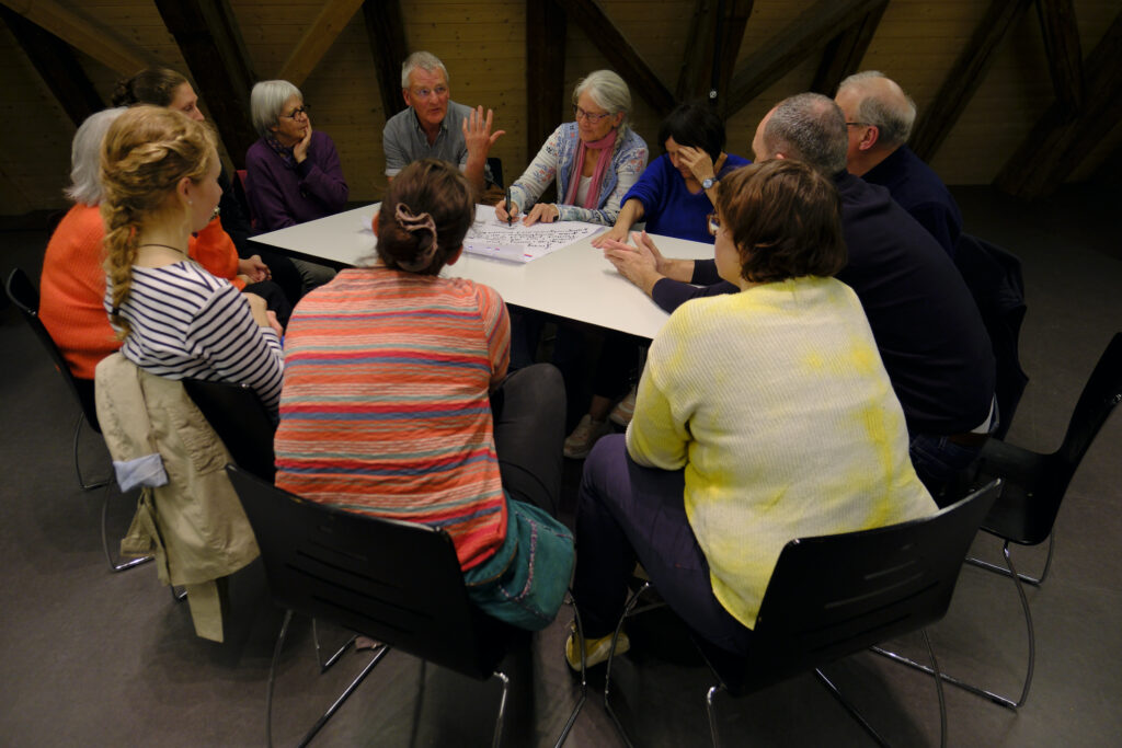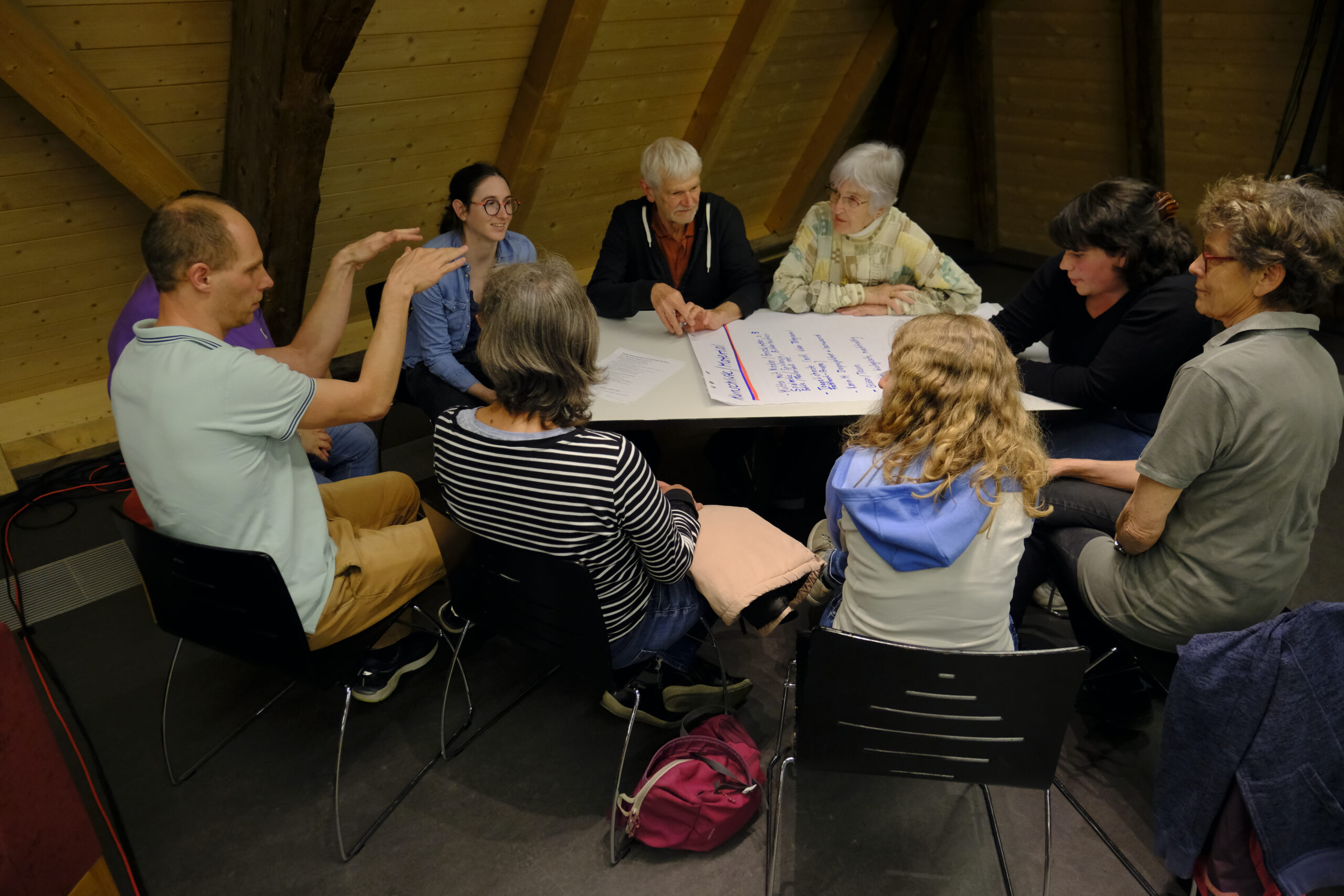 Zum Abschluss des Abends erarbeiten die Anwesenden unter der Anleitung von Fritz Zurflüh (69) Ideen und Inputs, die in die gemeinsame Zukunftsgestaltung des Höchhus einfliessen.