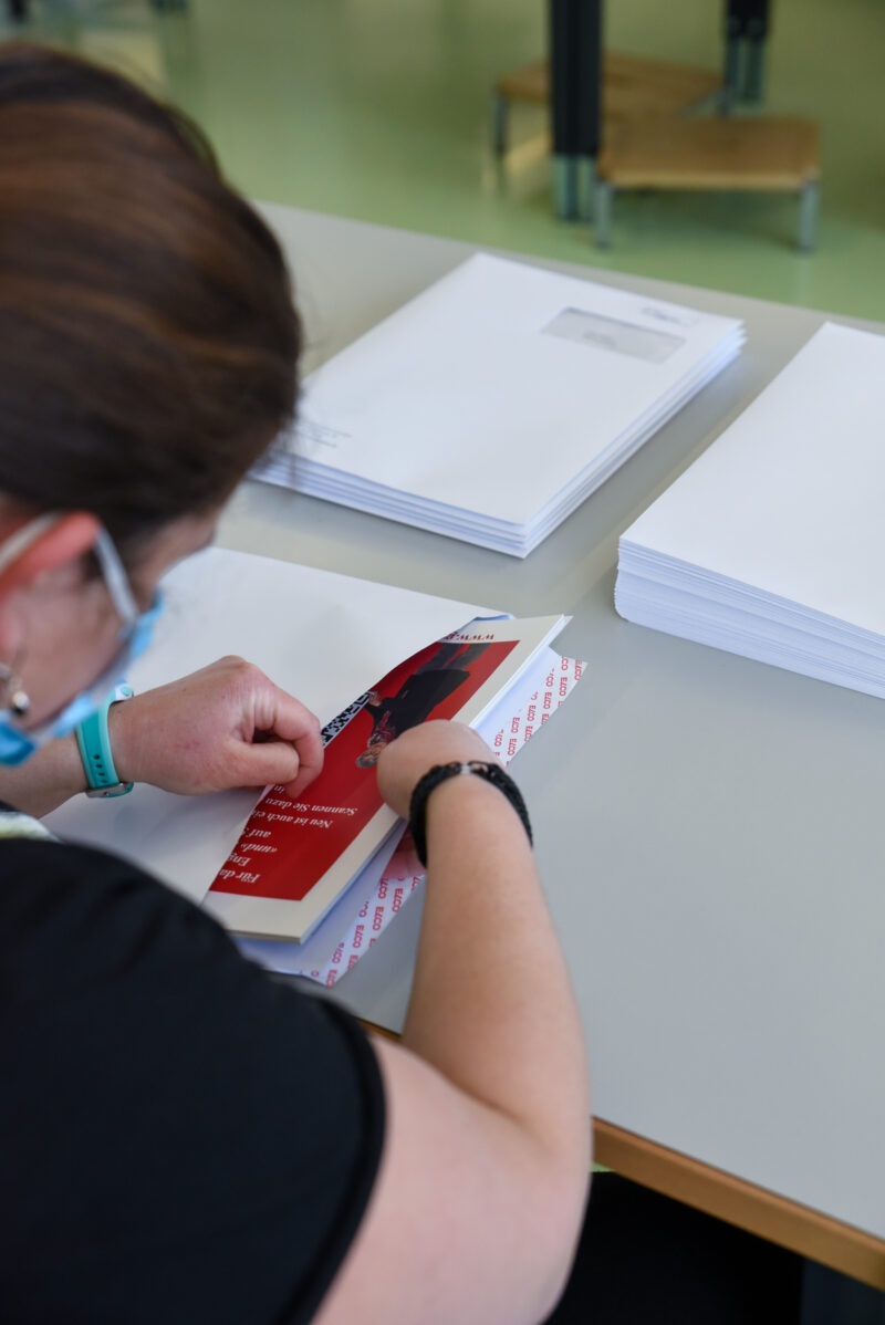 Nach abgeschlossenem Druck werden die fertigen Magazine ins Silea in Thun geliefert, wo sie für den Versand vorbereitet und verpackt werden. Im Silea erhalten Menschen mit Beeinträchtigungen die Möglichkeit, integrativ einer sinnvollen Tätigkeit nachzugehen.