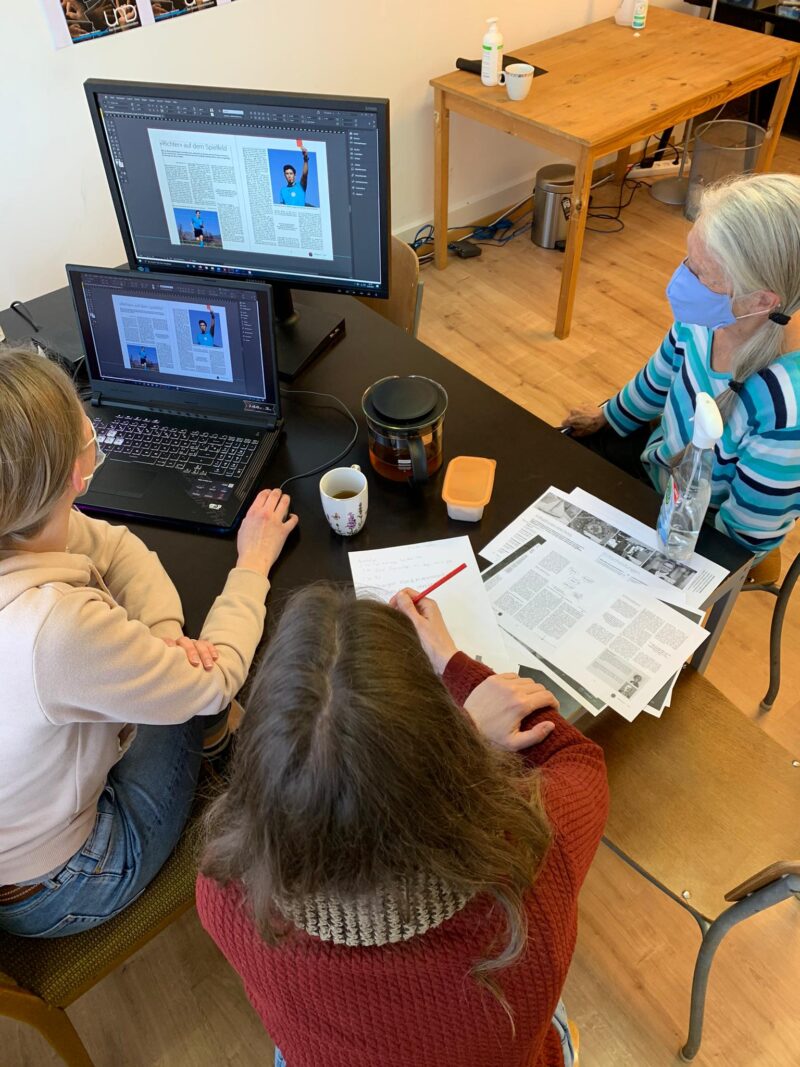 Nachdem die fertigen Artikel und Bilder von allen AutorInnen und FotografInnen von UND Generationentandem bei der Redaktion eingetroffen sind, gehen die LayouterInnen und KorrektorInnen ans Werk.
