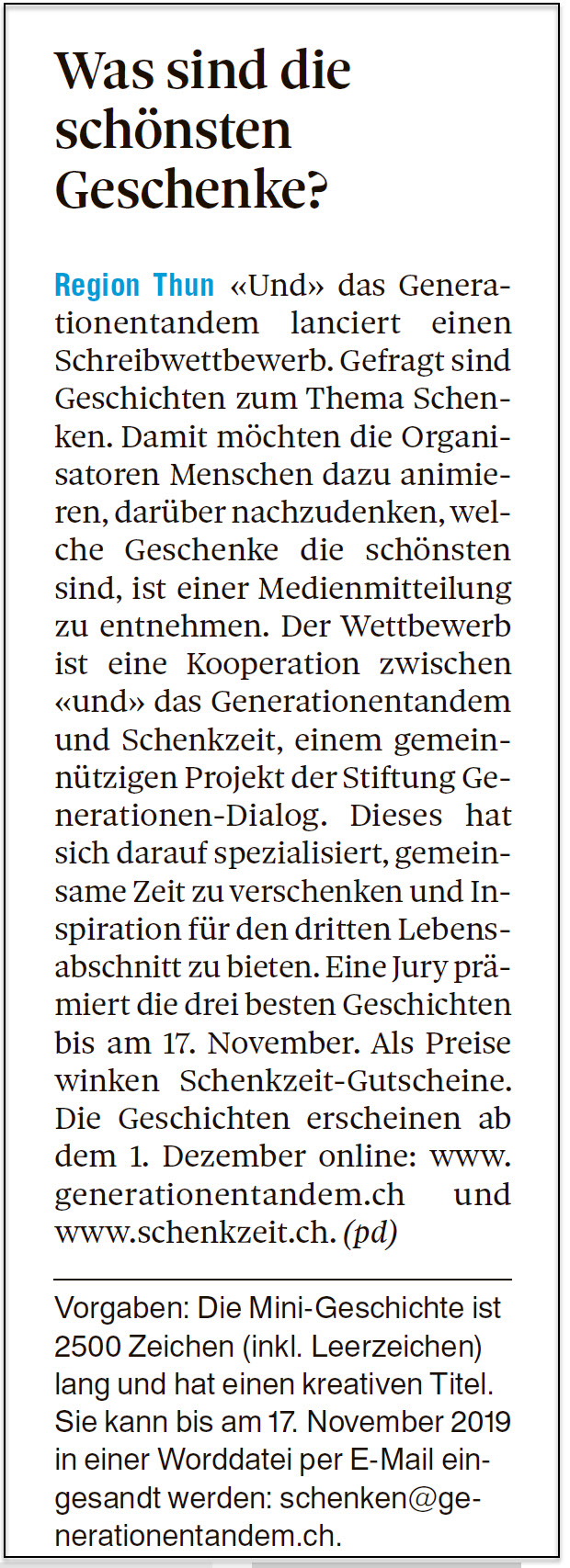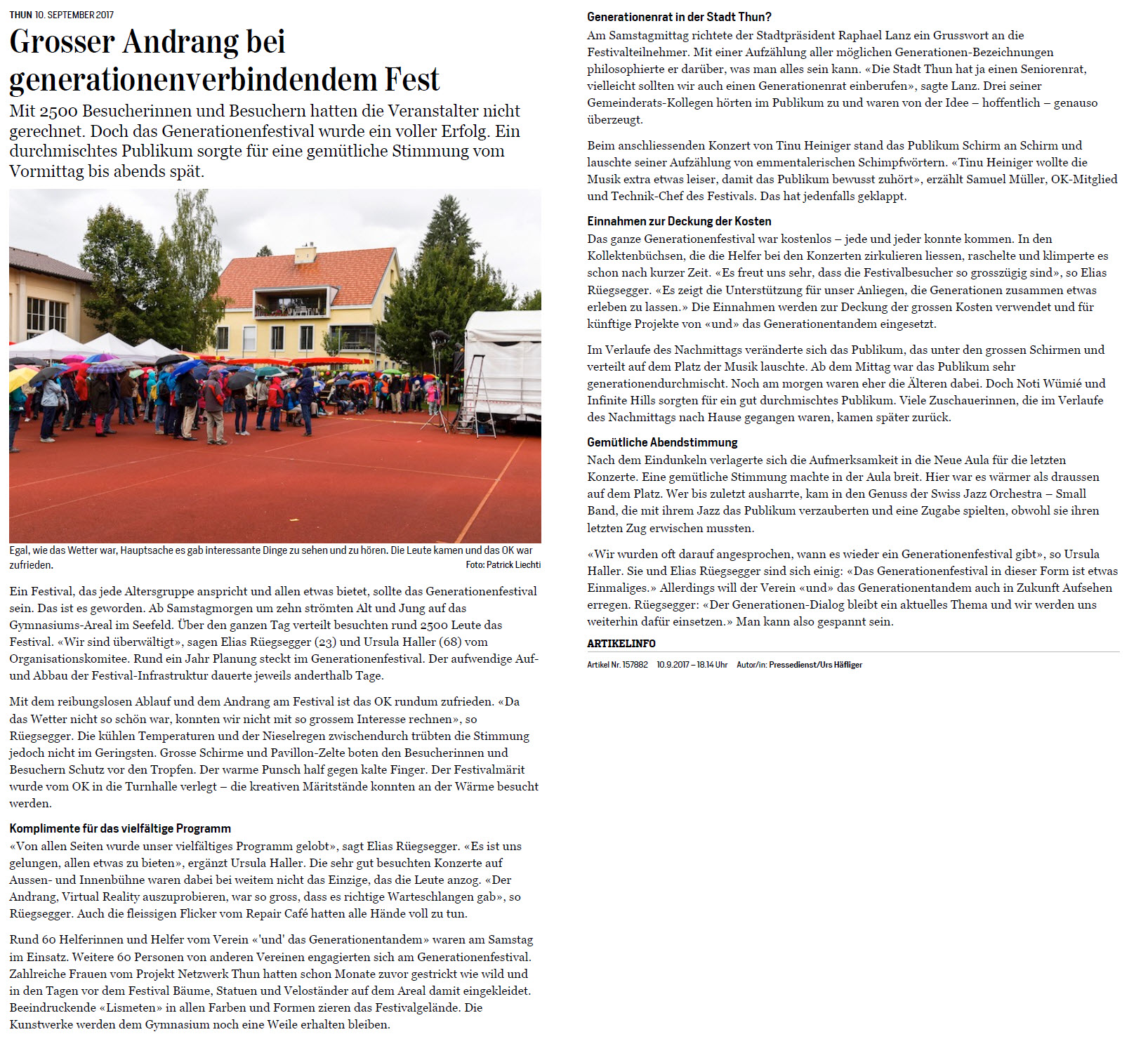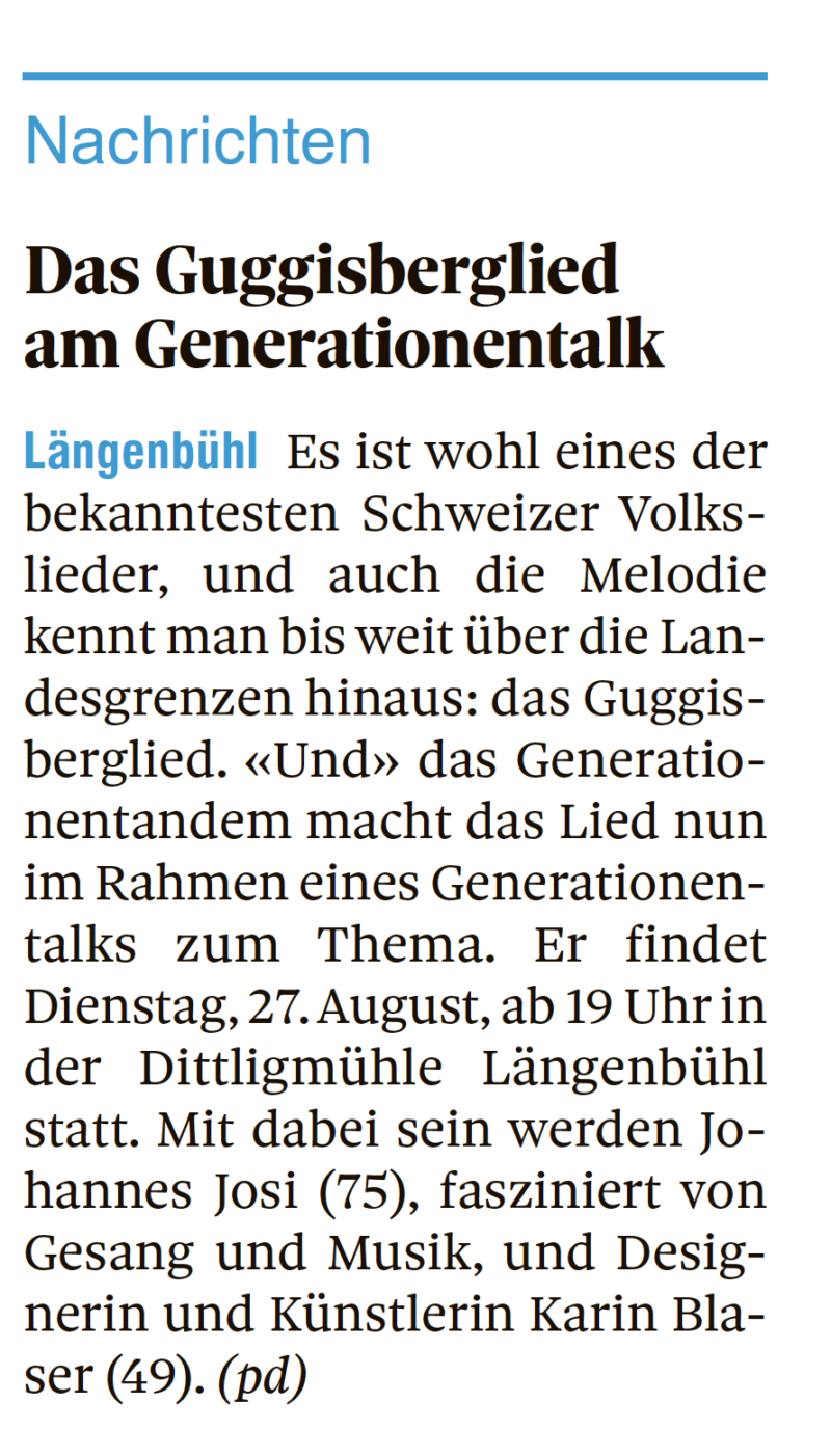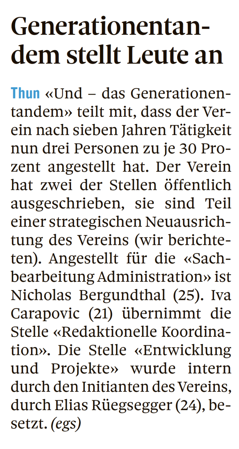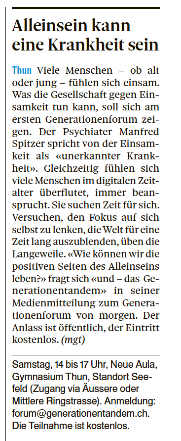 Vorschau im Thuner Tagblatt: Das Thuner Tagblatt berichtet heute über das Generationenfestival.