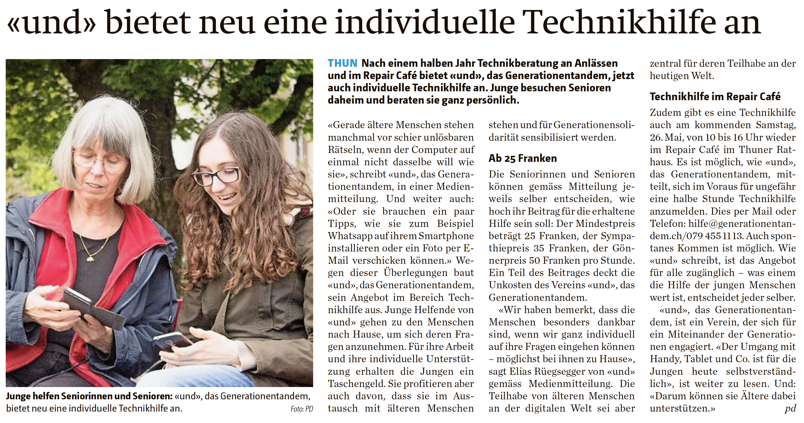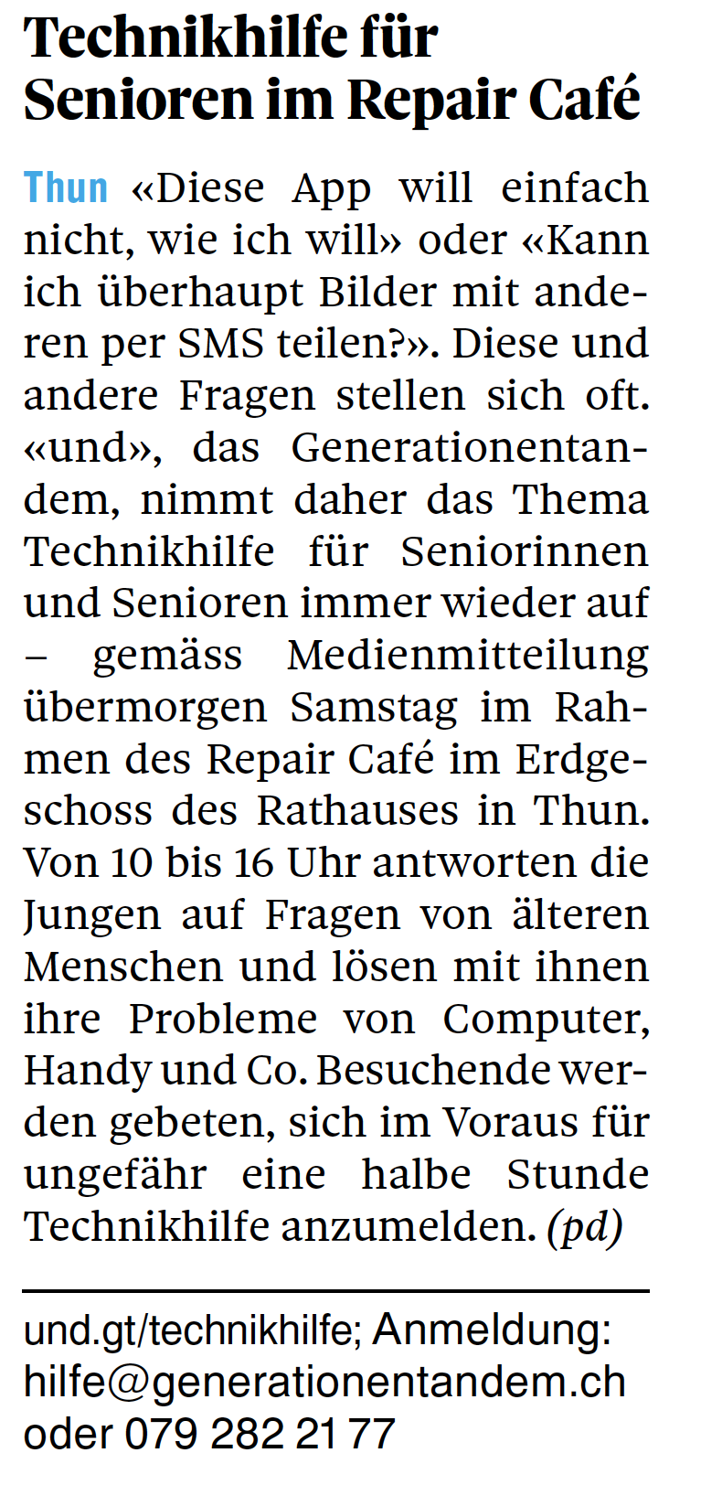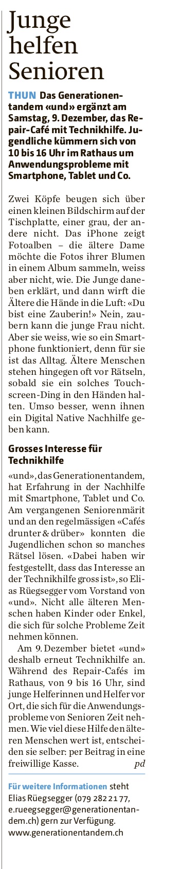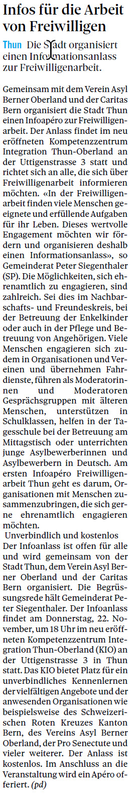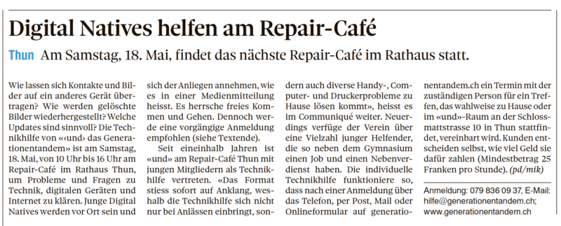 Beitrag im Thuner Tagblatt.