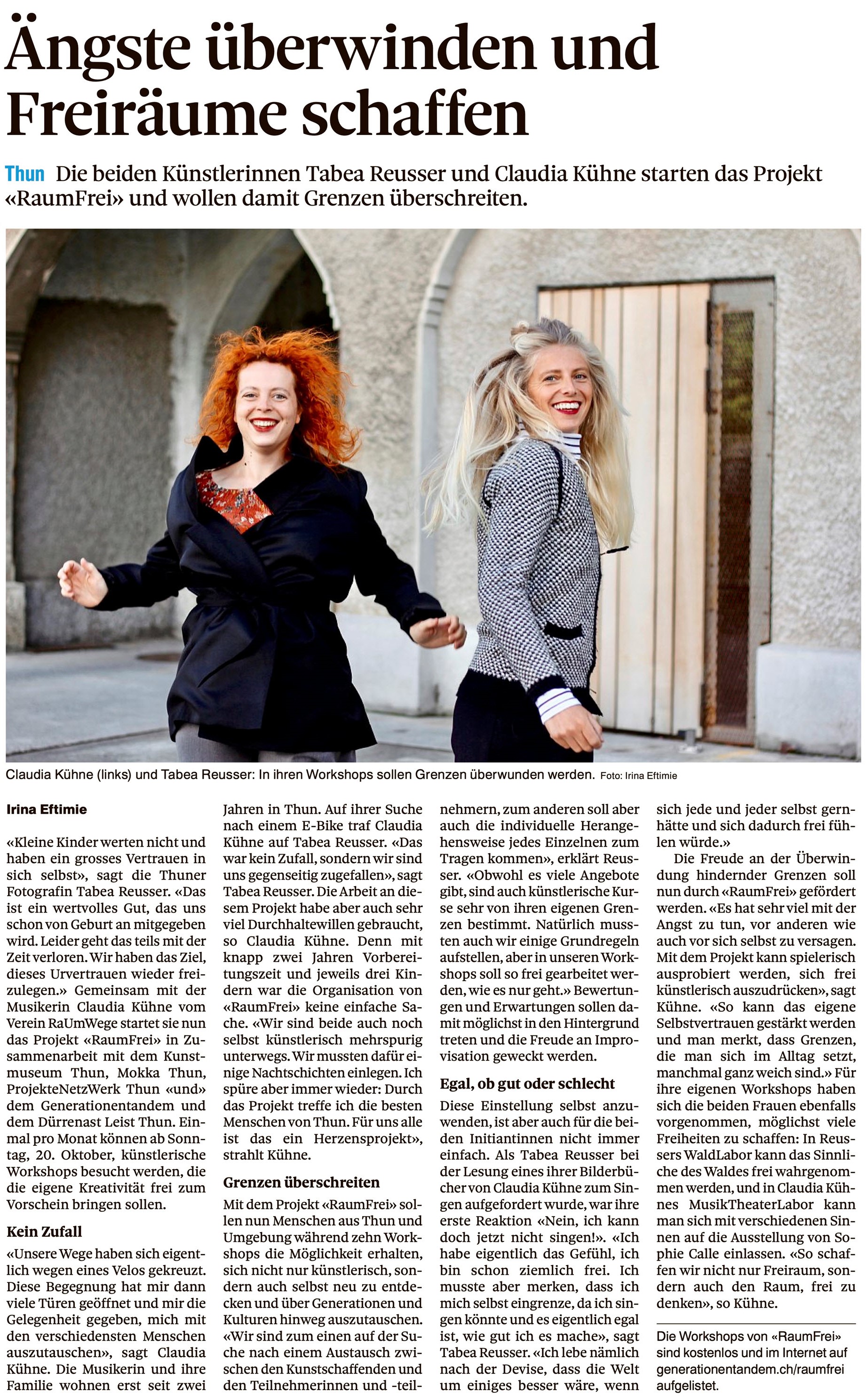 Reportage von Irina Eftimie im Thuner Tagblatt zum Generationenfestival.