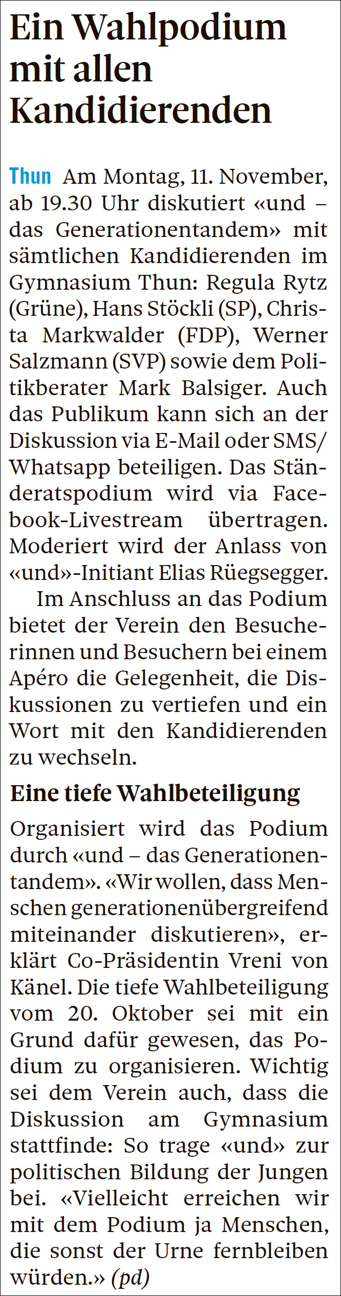 19 09 03 Beitrag im Thuner Tagblatt