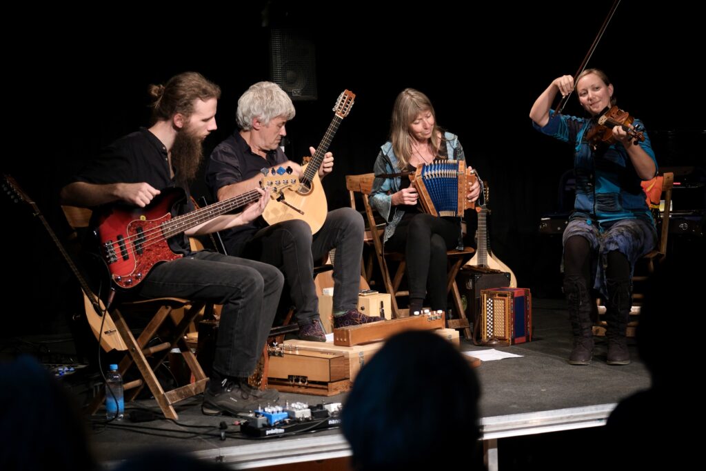 Raus aus dem Regen und in die gemütliche neue Aula treibt es die Besucher:innen um 17 Uhr. Neoländler, die Band aus Emmental, bietet mit ihren volksmusikalischen Interpretationen einen gemütlichen Start und begeistert sogar die grössten Volksmusikbanausen… 😉