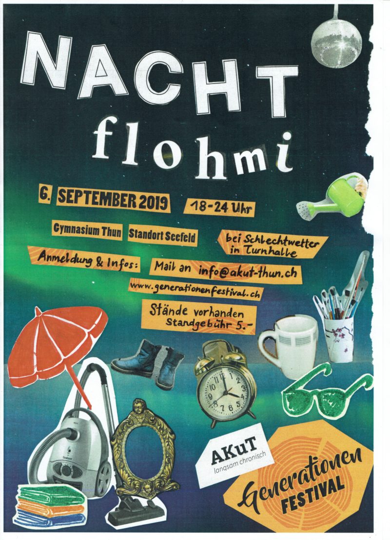 Hast du zu Hause viele Kleider, Möbel oder anderen alten Krimskrams und möchtest einen eigenen Stand betreiben? Melde dich für mehr Infos und zum Reservieren auf info@akut-thun.ch. Die Standgebühren betragen 5 Franken.