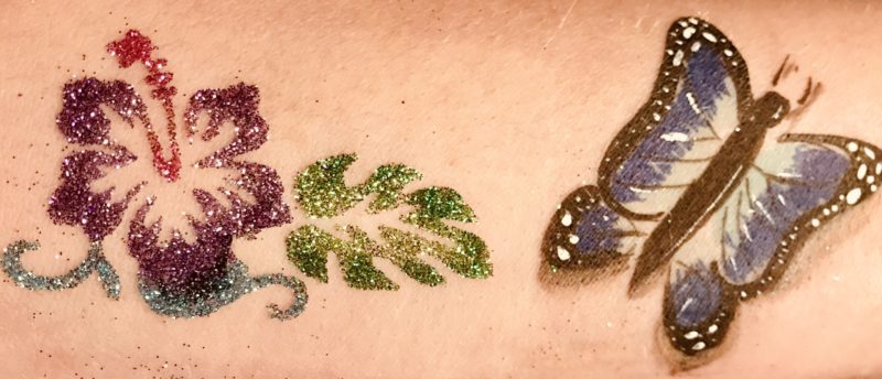 mit Schminke und Glitzer – oder einem Glitzertattoo. Lass dich beglitzern.