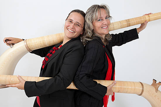 Tina und Monika, zwei charmante Musikerinnen, haben einen gemeinsamen musikalischen Weg eingeschlagen. Beide studierten ein Blechblasinstrument und produzieren sich jetzt als «timorosso», dem AlphornDuo der besonderen Art. Alphornmusik, traditionell oder in einem erfrischenden Mix aus den unterschiedlichsten Musikstilen, findet Anklang bei jung und alt.
