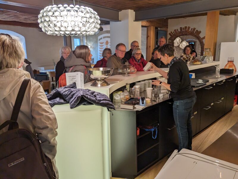 Es gibt Gipfeli und Brötli aus der Bäckerei sowie Kuchen. «Man muss es den Gästen etwas schmackhaft machen», unterstreicht Anto, ganz Profi: «Wir haben Kuchen, von Freiwilligen selbstgebacken; die Gipfeli anpreisen, nicht einfach auf den Tisch stellen und dann bleiben sie am Ende unberührt und vertrocknen.»