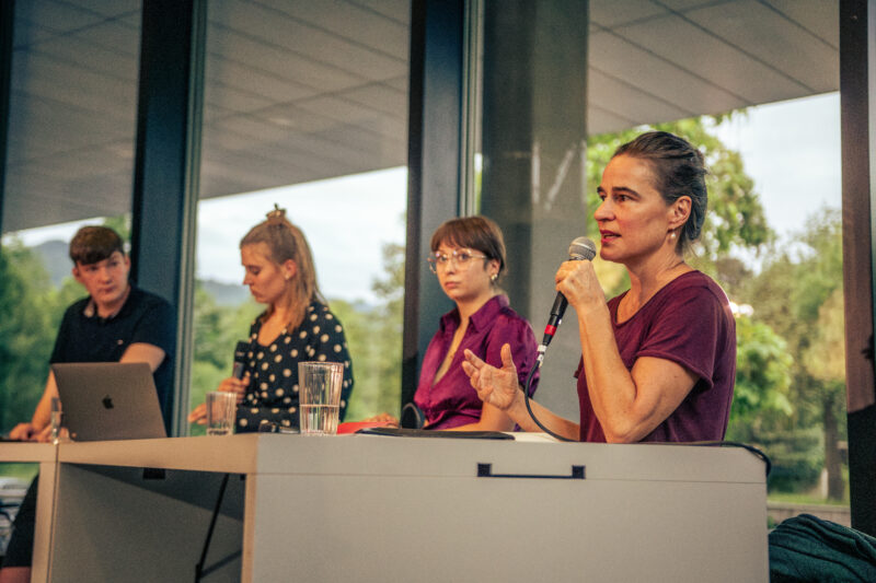 Partizipativ, digital und innovativ – so lassen sich die Podien beschreiben: Das Publikum bringt sich via Mentimeter in die Diskussion mit ein. Via Livestream können ZuschauerInnen aus der ganzen Welt teilhaben. Die Podien stehen später als Video- und Audiopodcast auf den verschiedenen Plattformen zum Nachhören bereit