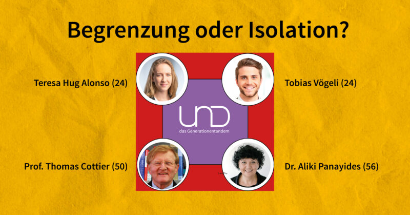 Diese Veranstaltung findet öffentlich statt – unter den Bedingungen einer «neuen Normalität»: UND Generationentandem lädt seit Juni wieder zu physischen Veranstaltungen ein. Bei dieser Veranstaltung herrscht Maskenpflicht. UND Generationentandem bittet die VeranstaltungsbesucherInnen selbst Masken mitzubringen. Im Notfall stehen Masken zur Verfügung. Zudem führen wir eine Präsenzliste für ein allfälliges Contact-Tracing. Die Veranstaltung kann auch digital via Livestream (hier oder auf der Facebookseite) verfolgt werden.