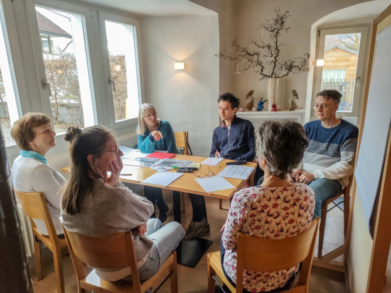 Nun werden wir ins kalte Wasser geworfen und finden uns zu fünft in einer WG wieder, in die wir vor einigen Tagen eingezogen sind. Im Haus befinden sich fünf Zimmer und ein Gästezimmer. Unsere Gruppe: Drei ältere Menschen, der eine ohne Kinder, die andern mit Kindern und Enkelkindern, sowie zwei junge Leute, die Frau mit einem Sohn und der Mann mir drei Töchtern. Die einen spielen Musikinstrumente, andere möchten gerne meditieren. Zuerst schütteln wir den Kopf. Zu unrealistisch, diese Voraussetzungen! Dann machen wir uns ernsthaft an die Arbeit.