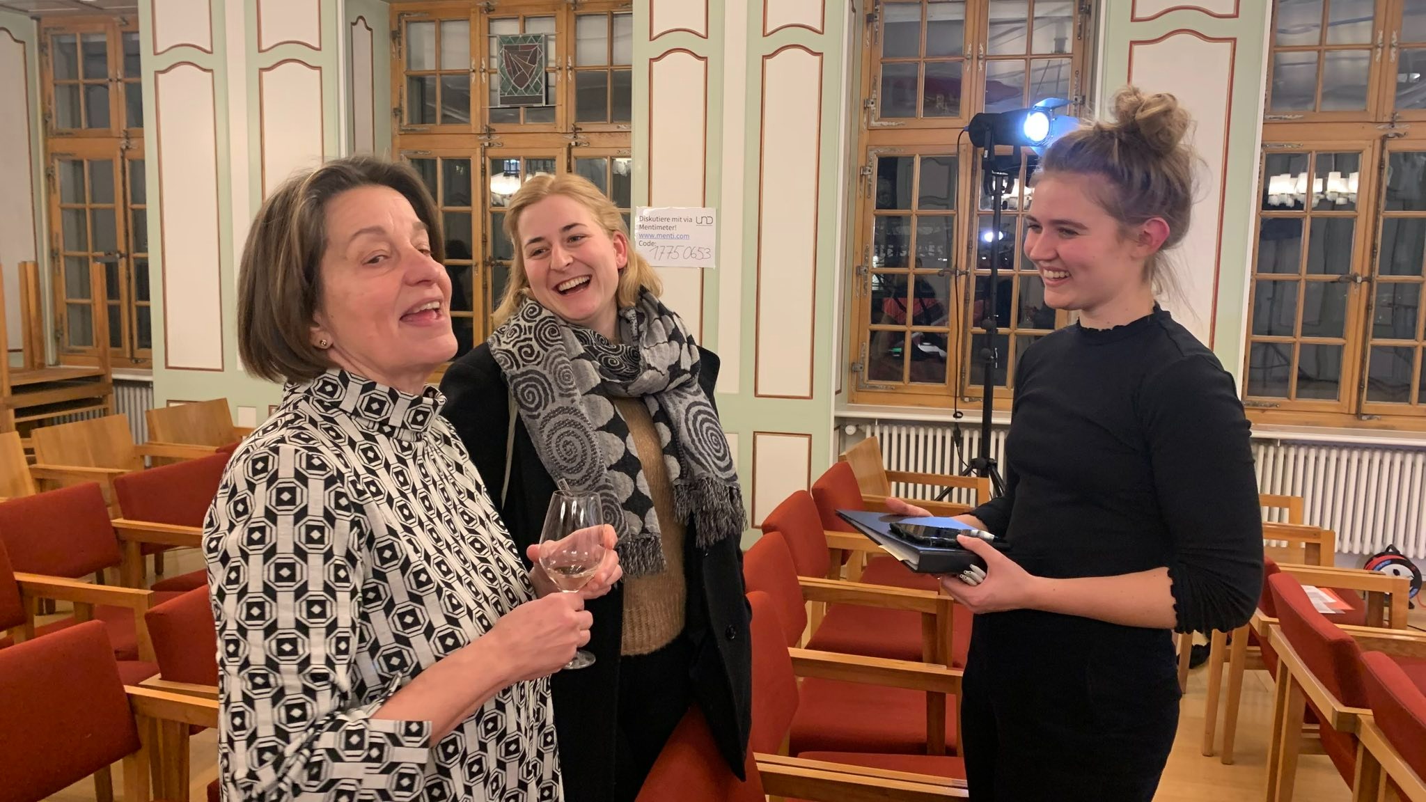 Im anschliessenden Podium, moderiert von Tabea Keller (23), nahmen drei weitere engagierte Persönlichkeiten teil: Sarah Schilliger (43), Mutter und Soziologin am interdisziplinären Zentrum für Geschlechterforschung an der Uni Bern, Roman Wyler (39), Vater, Hausmann, Tanzlehrer und Linda Hadorn (41), Mutter und Ressortleiterin Pflege und Alltagsgestaltung zweier Altersheime. Alle vier berichteten aus ihrer jeweiligen Care-Perspektive und gaben so vielseitige Einblicke in ihren Familienalltag, ihr politisches Engagement, ihre berufliche und wissenschaftliche Tätigkeit.