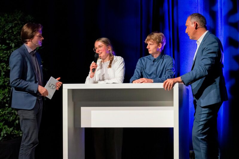 Die 100 Antworten von Thomas Zurbuchen ziehen die Zuhörer:innen in ihren Bann: Egal, ob er von den unendlichen Weiten des Alls oder Leadership spricht. Linda Quinn und Sebastian Kämpf, beide mit Schwerpunkt Physik und Mathematik am Gymnasium, stellen Thomas Zurbuchen 9 Fragen. Schliesslich geht es noch darum, warum es in den beiden Schwerpunktklassen nur gerade mal vier Frauen hat. Thomas Zurbuchen erzählt, dass er bei der NASA erreichen konnte, dass in seinen Kadern 45 Prozent Frauen waren. In Thun fragt er die beiden Gymnasiast:innen: «Was kann ich tun, damit wir mehr Frauen begeistern können?» Eine einfache Antwort gibt es an diesem Abend nicht. Das Thema Diversität in Teams, das ist Thomas Zurbuchen jedoch wichtig.
