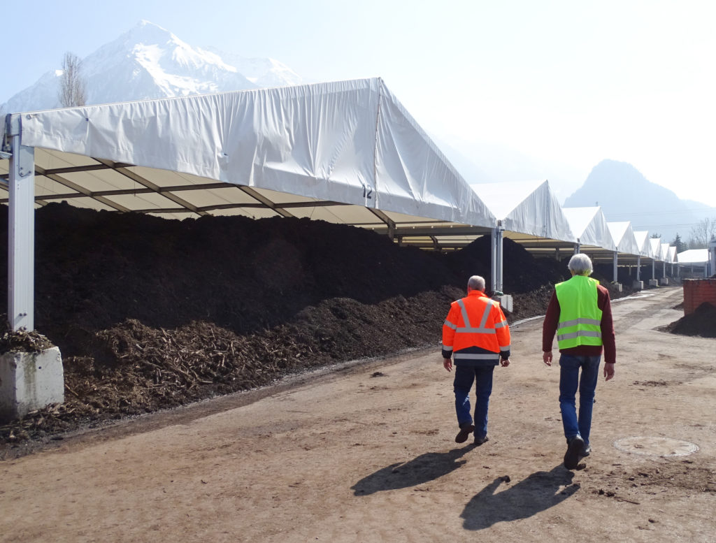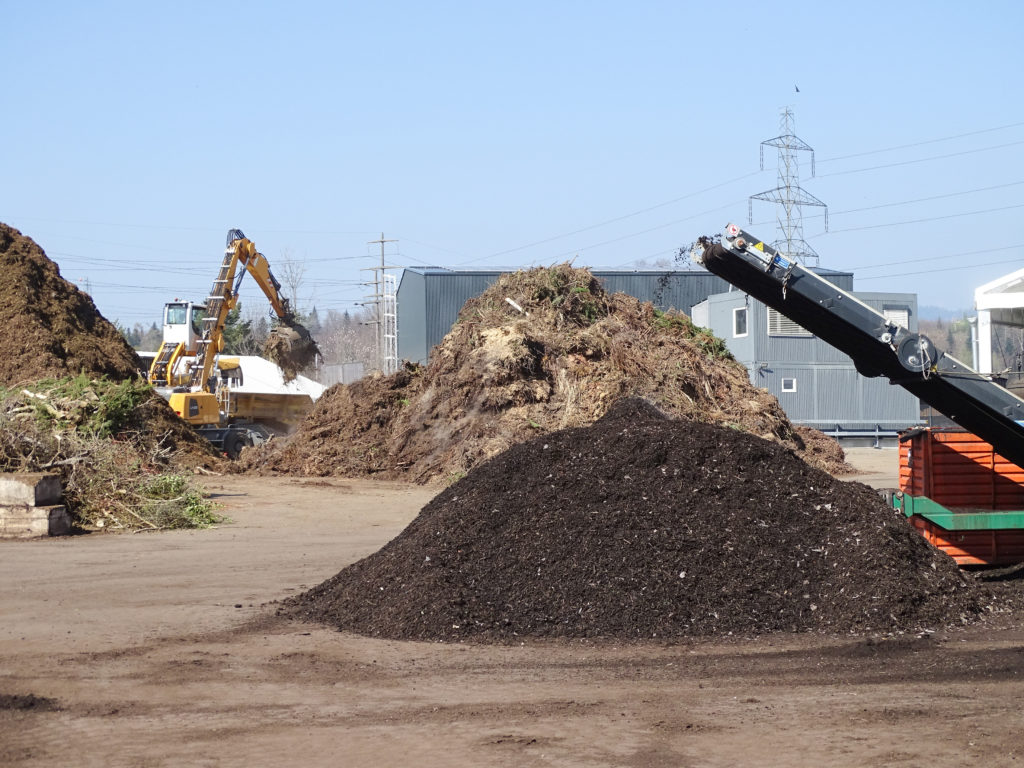 Hansruedi: Dr. Horst Matzke ist begeistert: Der Biologe greift in eine der Kompostmieten, füllt die Hand mit etwas Erde, führt sie vor seine Nase, schnuppert und sagt: «Reifer Kompost, riecht gut!» Wir befinden uns im Biomassezentrum, auf dem Gelände der Oberland Energie AG in Spiez. Seit 2011 werden hier jährlich über 30’000 Tonnen Grünabfälle in Energie und Kompost umgewandelt. Was einfach tönt, ist ein hochkomplexes, biologisch-technisches Verfahren. Horst Matzke, Mitglied der Geschäftsleitung der AVAG, gewährt uns einen Einblick.