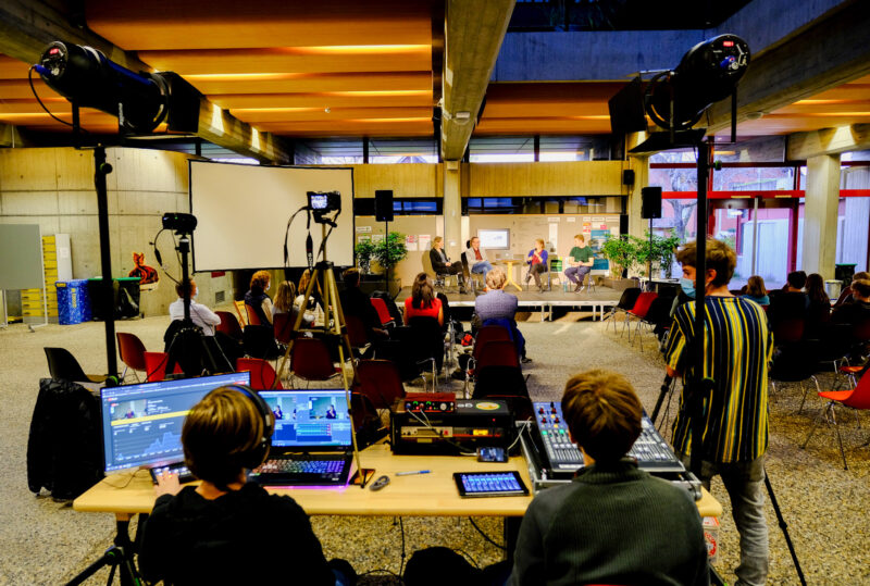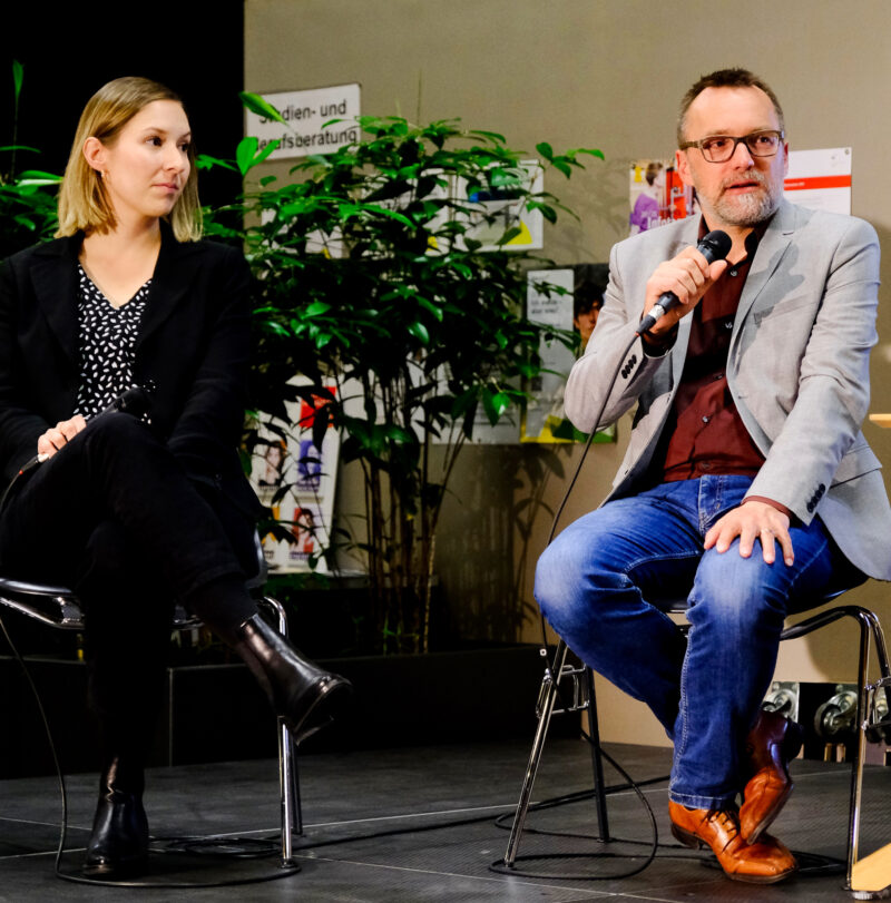 Auf dem Podium im Gymnasium Schadau treffen sich drei Fachleute mit je unterschiedlichem Fokus und beruflichem Hintergrund. Sie diskutieren, über welche «Future Skills» wir als Gesellschaft, als Berufsleute und in unserem privaten Umfeld verfügen müssen, um den Herausforderungen der Zukunft gerecht zu werden.