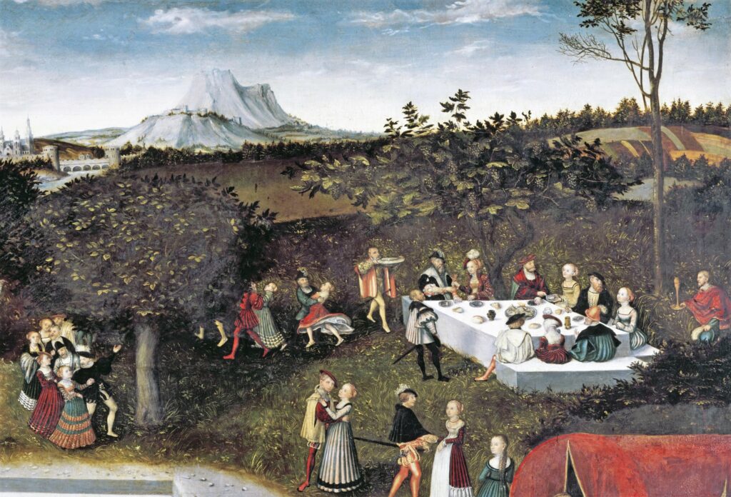 Der Wunsch nach ewiger Jugend zeigt sich seit Jahrhunderten in der Vorstellung, es gebe einen Brunnen, dessen Wasser die Kraft der Verjüngung besitze: den Jungbrunnen. Der Maler Lucas Cranach der Ältere veranschaulichte dies in seinem Gemälde «Der Jungbrunnen». Das Bild, heute in der Gemäldegalerie Berlin, malte er mit 74 Jahren – er kannte also die Freuden und Leiden des Alters. Das Thema bot ihm die Gelegenheit, die Badekultur seiner Zeit als Genrebild zu veranschaulichen, seine Fähigkeiten in der Aktmalerei zu beweisen sowie Brauchtum und Kleidermoden darzustellen.