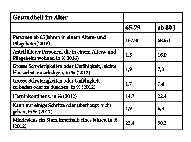 Du bist jetzt 65 und kommst in der Statistik «Gesundheit im Alter» auch bereits vor. Welche der erwähnten Punkte betreffen dich?