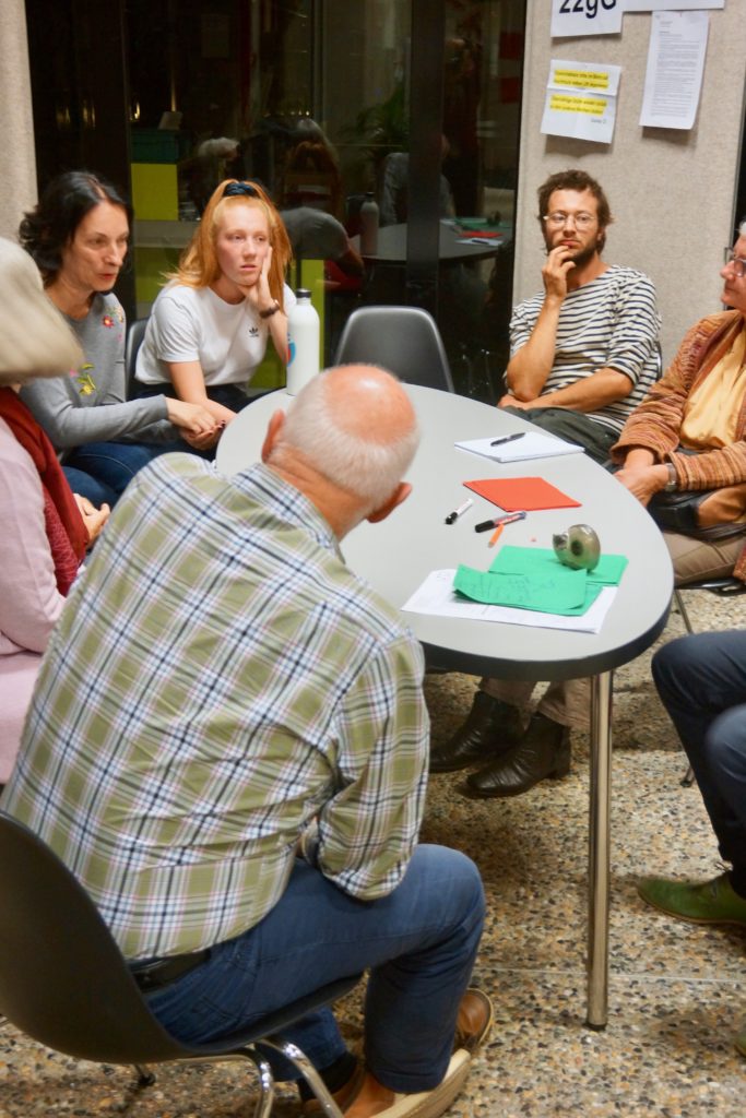 Vor der grossen Podiumsdiskussion von UND-Generationenforum fand am Vorabend der Workshopabend statt. Das Thema: Klimanotstand – was nun, Thun? Knapp dreissig Menschen aller Generationen beteiligten sich an dem Abend. In drei Gruppen diskutierten sie über mögliche nächste Schritte nach der Ausrufung des Klimanotstands auf lokaler Ebene.