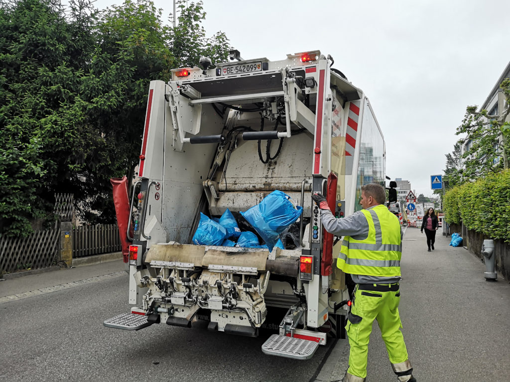 Dänu arbeitet seit 31 Jahren als Müllmann in der Stadt Bern. Erlebt hat er wohl schon alles. Zweimal schnitt er sich an zerbrochenen Glasflaschen in den Arm. «Knapp neben die Pulsader.» Dänu zuckt mit den Schultern, steigt vom Wagen ab und lädt weitere Kehrichtsäcke auf – diesmal etwa drei Säcke pro Hand. «Ich habe schon als Kind für meinen Vater Getränkeharassen herumtragen müssen», kommentiert er seinen Kraftakt.