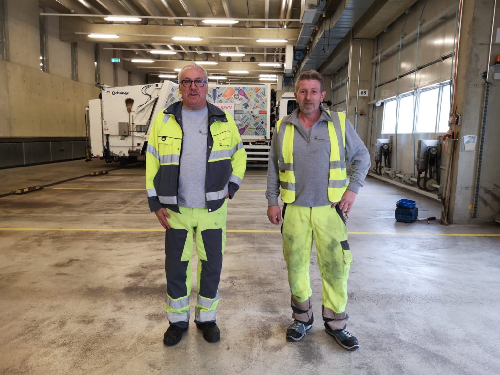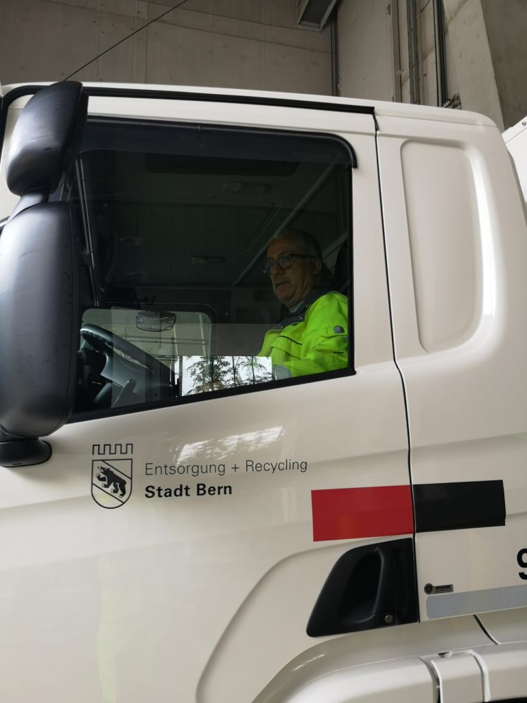 Die Route an diesem Morgen beginnt um sieben Uhr in der Früh bei der Station der Kehrichtabfuhr Bern, führt einmal durch Bümpliz und wieder zurück. Vor der Abfahrt wird gescherzt. Frauen sind keine zu sehen, obwohl einige wenige dort arbeiten. Jean-Pierre Stricker (60), seit fünf Jahren Chauffeur, lacht. Er habe seinem Kollegen aus Spass einen Frauenstreik-Pin ans T-Shirt geheftet. Es fallen ein paar sexistische Sprüche. Die Männer verabschieden sich und teilen sich auf ihre Wagen auf. Frauen haben es in dieser Branche wohl nicht leicht.