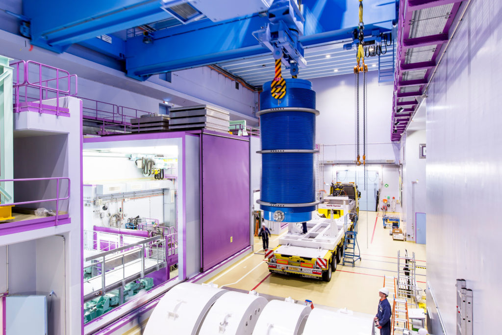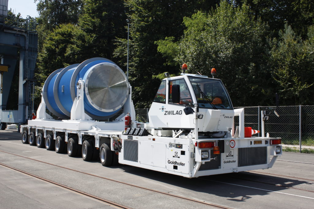 Die ausgedienten Brennelemente und hochaktiven Abfälle werden in diesen Transport- und Lagerbehältern in eine eigens dafür vorgesehene Halle gestellt. Diese Halle ist das Kernstück des Zwischenlagers. Bei voller Belegung finden in dieser Halle rund 200 solcher Behälter stehend Platz.
