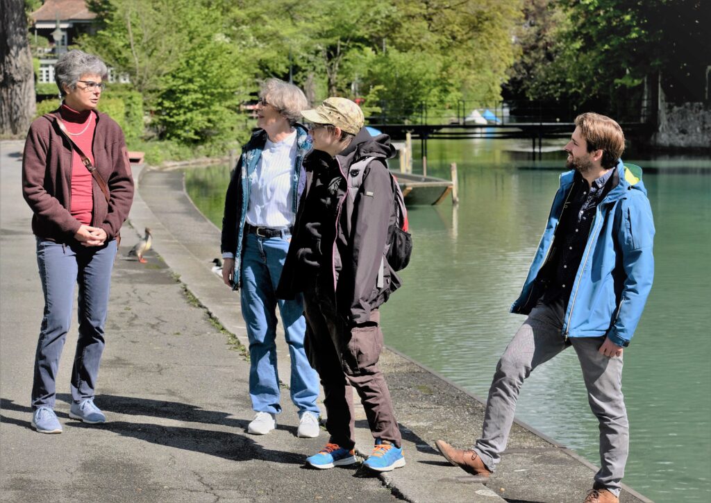 Anita: Zuerst zeigt er sich als munter über eine Bergwiese plätscherndes Bächlein. Klares Wasser fliesst über bunte Steine, die in der Sonne glitzern. Das Bächlein wird zum Bach, der als tosender Wasserfall tief unten zu Tale donnert. Zum Fluss geworden, rauscht das Wasser über Stock und Stein. Jahre später fliesst mein Fluss mit spärlichem Wasser eingeengt in einer Betonröhre unterirdisch dahin. Endlos lang scheint ihm der finstere Tunnel, bis er endlich ans Licht auftaucht und durch einfliessende Nebenbäche genährt wird. Heute fliesst mein Fluss gemächlich dahin, er hat vieles «gesehen» auf seinem Weg. Einige Nebenflüsse sind versickert, neue entstanden. Das angepasste Tempo ermöglicht ihm, sich an kleinen Dingen wie seltenen Pflanzen oder Tieren zu erfreuen.