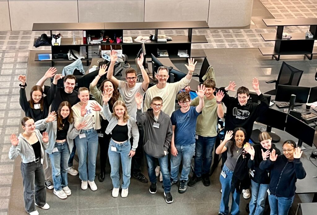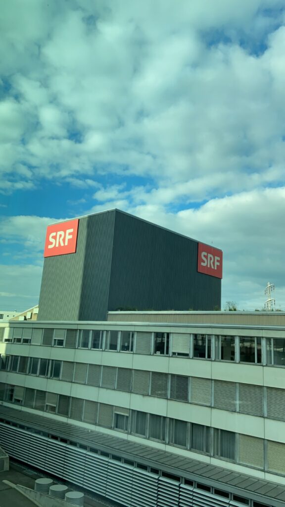 Am ersten Tag besuchten wir das Fernsehstudio in Leutschenbach, Zürich. Dort wurden wir herzlich empfangen, zusammen mit anderen Gruppen der Jugendmedienwoche. Nach einer Führung durch den Newsroom konnten wir live miterleben, wie die Tagesschau produziert wird. Dabei erfuhren wir, dass mehrere Kameras zum Einsatz kommen, die alle automatisiert sind – die Moderator:innen sind also meistens alleine im Studio. Zu Spitzenzeiten sorgen bis zu 80 Mitarbeiter:innen aus Redaktion, Technik, Produktion und Partnerbereichen für die Newsversorgung auf allen Kanälen von SRF. Zur Mittagszeit stärkten wir uns in der Kantine, wo wir viele bekannte Gesichter des SRF antreffen konnten. Am Nachmittag begannen wir mit der Strukturierung unseres Beitrags und führten erste Vorgespräche mit potenziellen Interviewpartner:innen. Schlussendlich wurden vier Interviewtermine vereinbart.