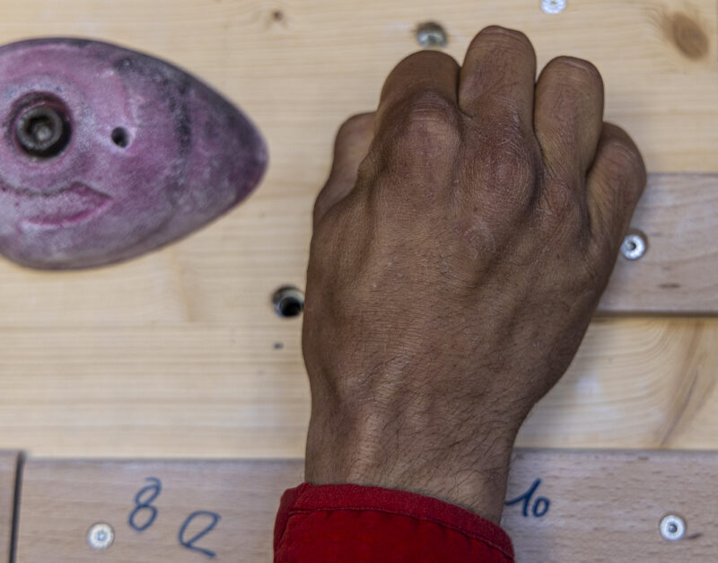 Ja, in einer Kletterhalle in Ostermundigen. Dort bin ich im O’bloc Team und kann mit der Kletterelite trainieren, werde gepusht und kann so mein Kletterniveau steigern. Das körperliche Training ist extrem wichtig. Training steigert meine Reserve. Wenn ich am Limit klettere, kann ich das nicht seilfrei oder an einer schlecht gesicherten Route machen, das Risiko wäre zu gross. Wenn ich dort klettere, wo die Absicherung spärlich ist – mit wenig Zwischenabsicherungen –, gehe ich nicht an meine Grenzen; so habe ich etwas mehr Reserve. Aber mit Training kann ich zunehmend grössere Schwierigkeitsgrade klettern, kann mich auf weniger gut gesicherte Routen einlassen und mich immer noch im Komfortbereich bewegen.