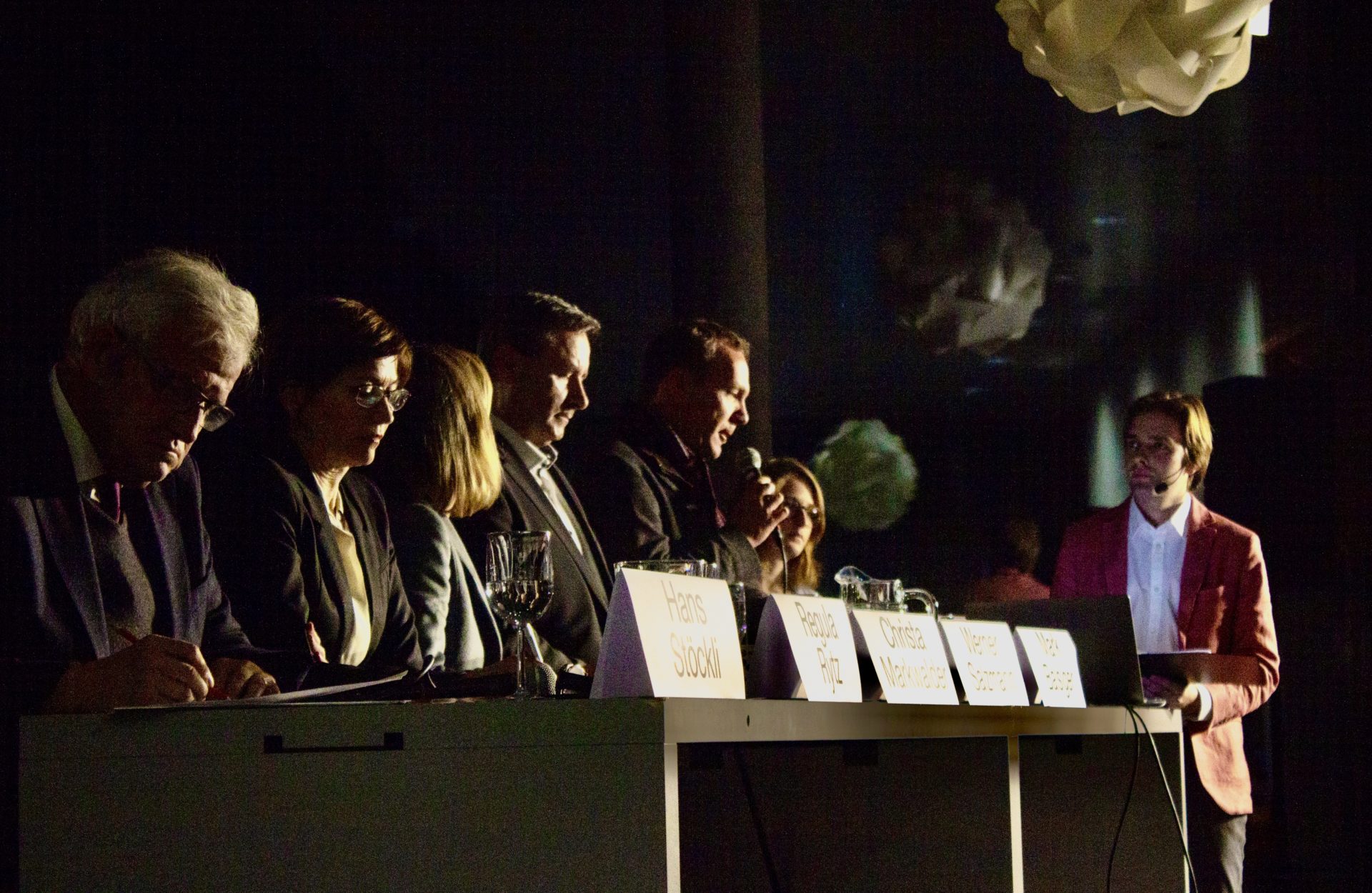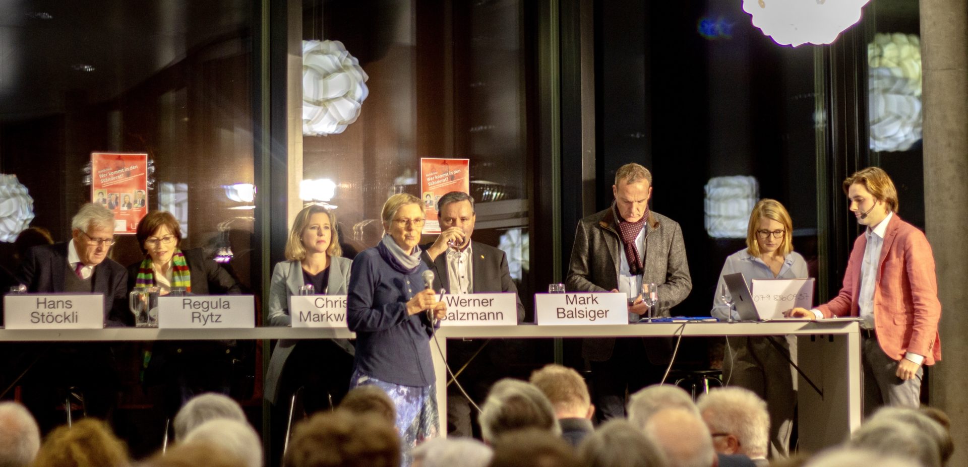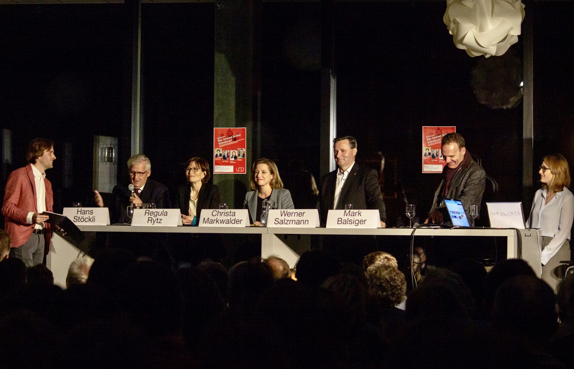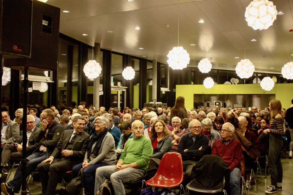 Am Montag 11. November kreuzten die KandidatInnen für die beiden Ständeratssitze ihre rhetorischen Klingen im Gymnasium Thun. Auf Einladung von UND Generationentandem diskutierten Regula Rytz (Grüne), Hans Stöckli (SP), Christa Markwalder (FDP) und Werner Salzmann (SVP) über die dringendsten politischen Fragen. Das Podium wurde live übetragen und kann nachgeschaut werden (aufgezeichneter Facebook-Livestream). Der politische Anlass sorgte für grosse Aufmerksamkeit: 300 Menschen jeden Alters waren dabei und diskutierten via WhattsApp und Mail mit.