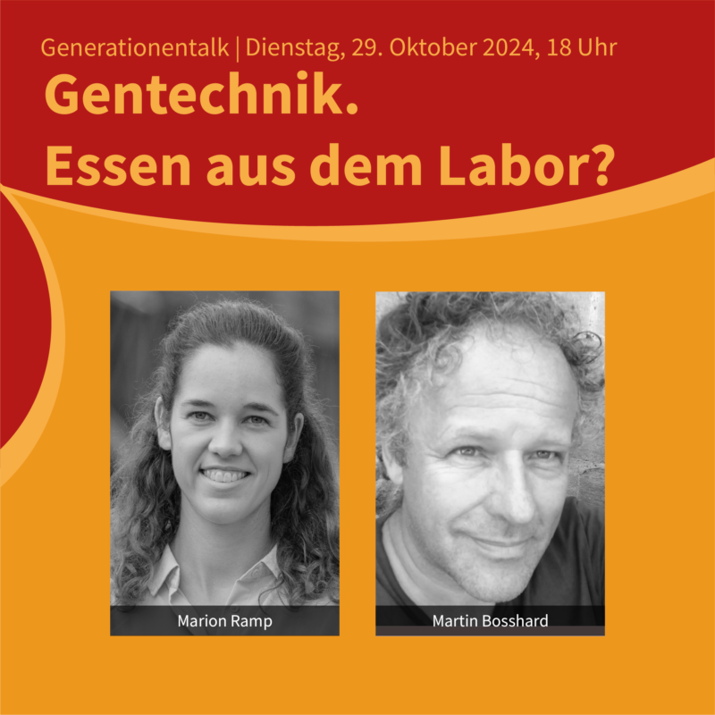 Über Gentechnik sagt sie: «Neue Pflanzenzüchtungsverfahren können einen Beitrag zur Bewältigung der pflanzenbaulichen Herausforderungen wie z.B. die Reduktion des Ressourceneinsatzes und der Bewältigung der Folgen des Klimawandels leisten.» - Martin Bosshard ist dipl. Ing.-Agr. ETH und seit 2009 zuständig für die Politik von Bio Suisse und Co-Präsident der neuen Initiative «Für gentechnikfreie Lebensmittel (Lebensmittelschutz-Initiative)».
