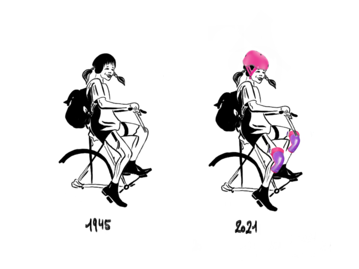 Das Sicherheitsdenken ist bei Eltern heute verbreiteter und intensiver als früher. Fahrradfahren ohne Helm – heute undenkbar, früher der Normalfall. In den 1950er-Jahren wollte man brave, nicht unbedingt selbstständige Kinder. Selbstständig wurden sie aber oft notgedrungen, weil die Eltern wenig Zeit für die Erziehung hatten. Heute will man selbstständige Kinder, behütet sie aber rund um die Uhr, was eher weniger förderlich ist für die Entwicklung zur Selbstständigkeit. Woher kommt der Trend der Überbehütung und zum Mikromanagement des Nachwuchses? Eine Ursache dürfte in der technischen Entwicklung liegen, insbesondere in der Verfügbarkeit von Handys. Wenn wir früher am Nachmittag ins Schwimmbad gingen, waren wir für diesen Zeitraum der elterlichen Behütung (glücklich) und Kontrolle entkommen; mussten dann aber auch klarkommen ohne Handy-Nabelschnur. Neben solch technischen Aspekten spielen aber wohl auch gesellschaftliche Veränderungen eine Rolle: Der Hirnforscher Ralph Dawirs weist darauf hin, dass Eltern heute meist weniger Kinder haben, auf die sich dann vermehrt die Aufmerksamkeit konzentriert. Früher in den Grossfamilien war oft schlicht die Zeit nicht, sich intensiv um jedes einzelne Kind zu kümmern. Zudem leben die Kinder heute in einer sehr leistungsorientierten Gesellschaft, was die Eltern dazu verführen mag, den Kindern weniger Raum zum Ausprobieren zu lassen. Stattdessen wird überlegt, welches Hobby für den späteren Werdegang der Kinder von Nutzen sein könnte, ob es nicht gut wäre, sie noch beim Chinesischkurs für Erstklässler anzumelden oder in den Klavierunterricht zu schicken, oder… Und weil dann das Tagesprogramm so dicht gedrängt ist, werden die Kleinen im Elterntaxi gefahren, und es bleibt kaum Zeit zum elternfreien Spielen.