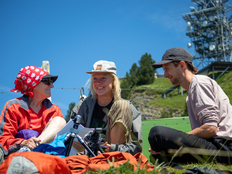 Auf dem Niederhorn befinden sich drei Bänder, gespannt hoch über dem Abgrund. Die Aussicht auf den Thunersee und die Berner Alpen ist atemberaubend. Wir sind mit Kasia Tschopp und Dyan Enghard, beide vom Verein Slackattack Thun (www.slackattack.ch), zu einem Interview verabredet. Während wir uns unterhalten, herrscht im Camp ein buntes Treiben: Die Balancierenden auf den Lines wechseln sich ab, die anderen singen; jemand spielt Gitarre, jemand jongliert.