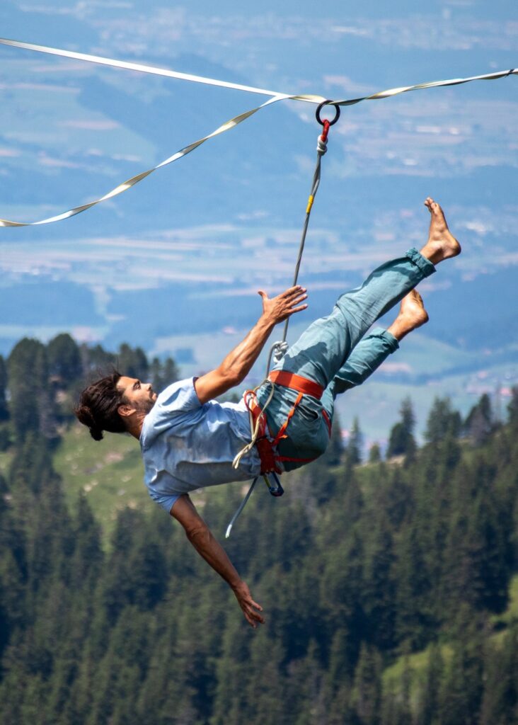 D.: Es gibt Orte, die machen mir jedes Mal Angst, zum Beispiel exponierte Felsen. Aber wenn ich mich auf die Highline setze, danach aufstehe und laufe, weiss ich: Ich kann es, ich bin gesichert. Ich konzentriere mich darauf, stabil zu bleiben und mich abzulenken. In diesem Moment ist die Angst nicht megapräsent.
