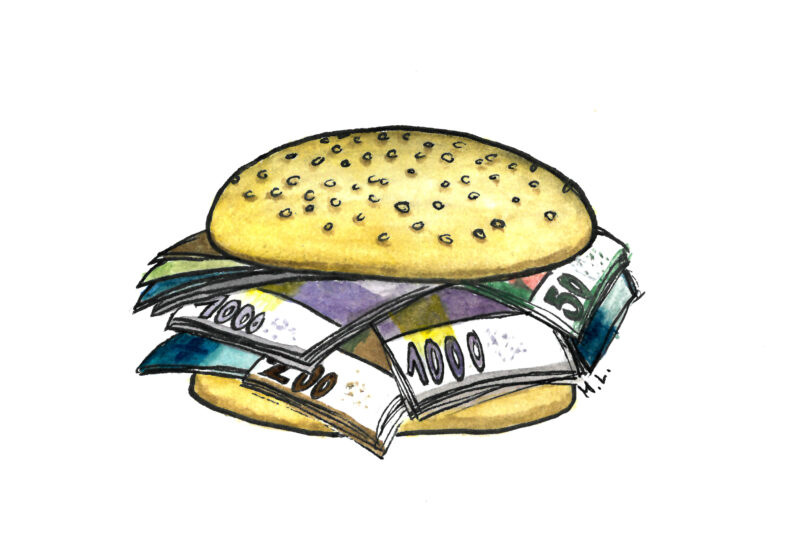Am folgenden Montag ist es dann soweit. Unser Toni beobachtet die Bank, die Schalterhalle ist leer, nur Herr Zasterer hat über Mittag Dienst. «Lieber Herr Zasterer! Schön, dass gerade Sie da sind.» In zwanglosem Gespräch lässt er den «Burger» einfliessen. Der Banker stutzt einen Moment, macht sich dann fast robotermässig an sein Werk. Nach geraumer Zeit verabschiedet sich Toni mit einem diskreten Kuvert.