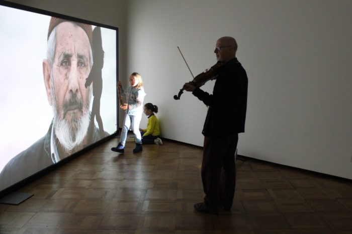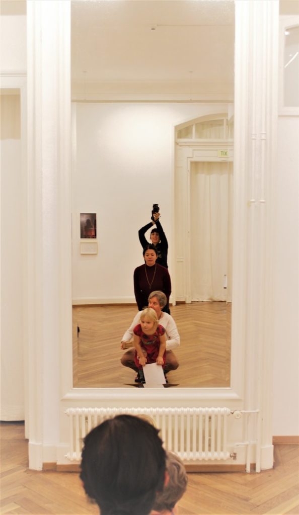Und dann der bewegende Moment. Wir stellten wir uns vor den ausgewählten Bildern auf und präsentierten unsere Beiträge. Ein Gong aus der Ferne und knarrender Boden liess die Geister der Vergangenheit lebendig werden. Eine klingende Fotografin verfolgte, wie Sophie Calle es dargestellt hatte, fliehende Gestalten. Am rauschenden Meer begleitete eine Violine zwei Kinder, die mit ihren Instrumenten das Meer darstellten.