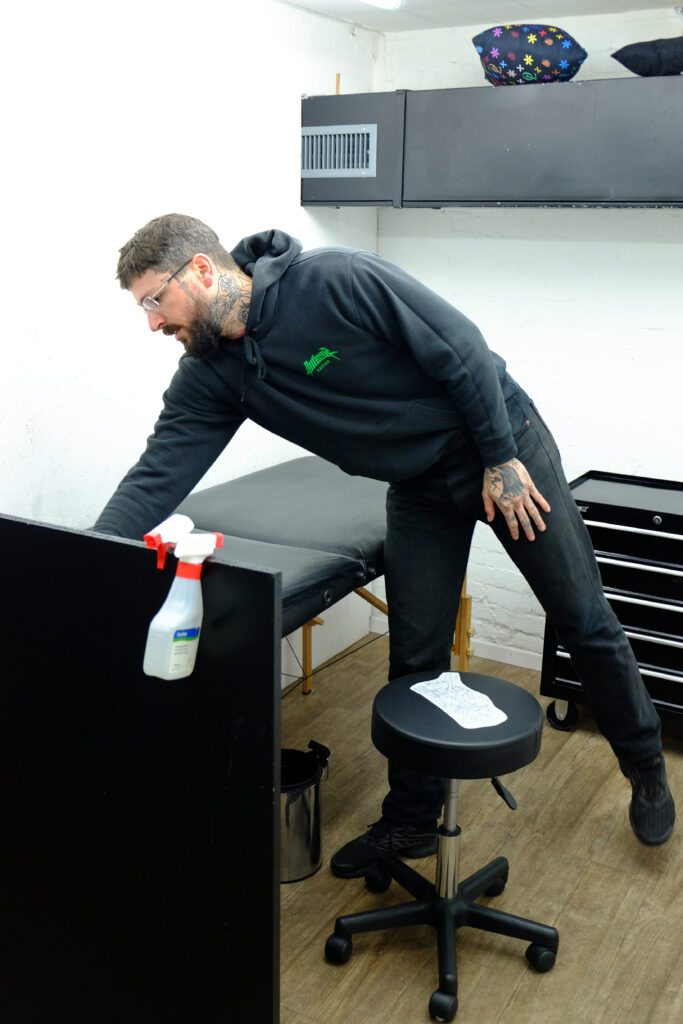 Als begabter Zeichner und Mensch mit hohen Ansprüchen sowie einem grossen Berufsethos hat er die richtigen Voraussetzungen, diese Kunst seriös auszuführen. Seine ruhige, gepflegte und kompetente Erscheinung erweckt Vertrauen, was eine Grundvoraussetzung ist in diesem Metier. Es geht ja nicht nur um die Besprechung des Sujets, der Farbe und der Grösse des zu stechenden Tattoos, sondern auch um die Person, die sich stechen lässt. Angst, Unsicherheit und Nervosität müssen berücksichtigt und besprochen werden. Bevor Manuel loslegen kann, muss jeder Klient, jede Klientin eine Einverständniserklärung ausfüllen. Diese weist auf mögliche Gefahren hin, wie beim Einnehmen von Medikamenten oder Schwangerschaft, oder auf die Behandlung von nachträglichen, eventuellen Infektionen. Die Person, die sich stechen lässt, muss diesen Risiken zustimmen. Denn: Rechtlich gesehen, ist eine Tätowierung eine Körperverletzung.