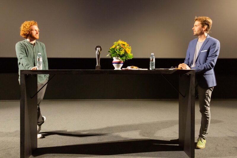 Im Vorfeld trafen sich Barbara Tschopp und David Oesch. Die Autorin und der Regisseur begegneten sich schon an früheren Anlässen. Vor der jetzigen Veranstaltung zur Feier seiner Erfolge interviewte sie ihn in Zürich.