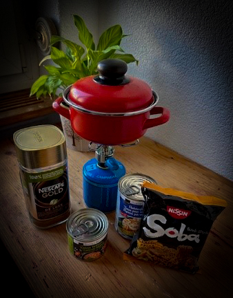 Zugegeben, ganz ohne Vorbereitungen bin ich nicht in die drei Tage gegangen. Diese beschränkten sich aber auf das Nötigste, wie zum Beispiel eine Notfallausrüstung. So hatte ich einen Mini-Campingkocher, eine Kühlbox mit Kühlelementen (die für einige Zeit einen Kühlschrank ersetzen sollte) und verschiedene Lichtquellen wie Taschenlampen und Kerzen dabei.